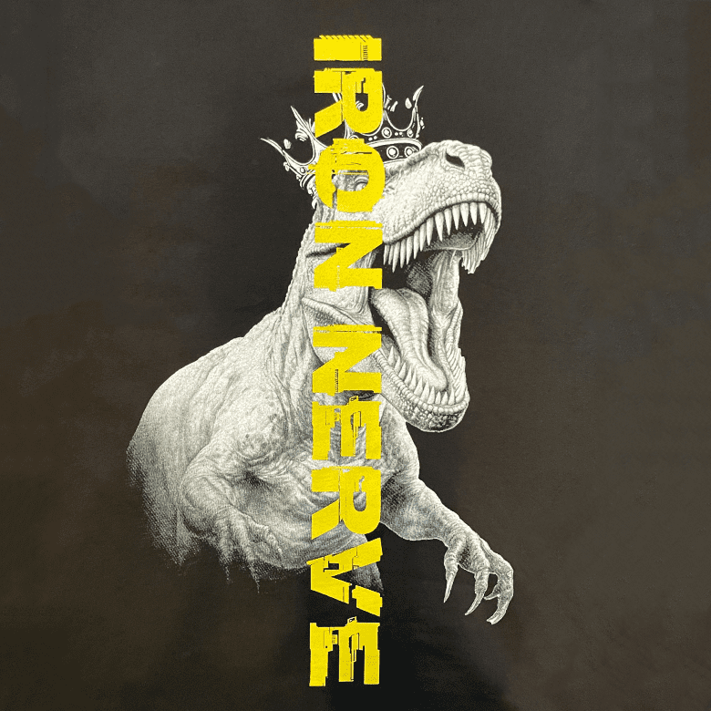 シンプルなロゴ、背面の恐竜&王冠