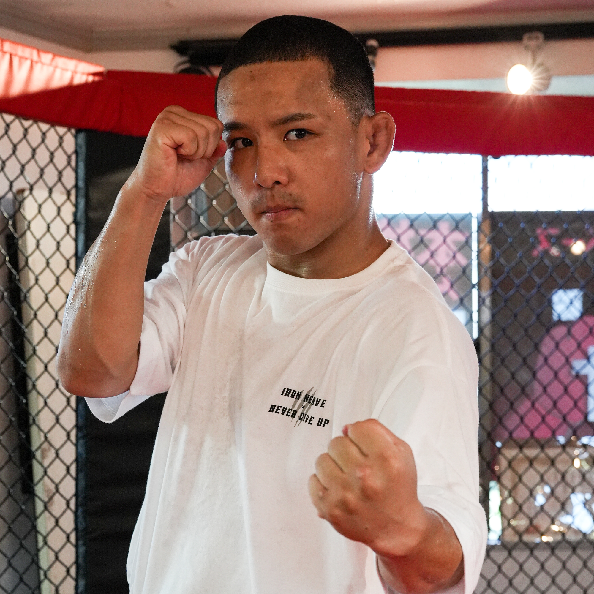 JURASSIC GEARアンバサダー、MMAファイター/修斗2階級チャンピオン・新井 丈選手とのコラボレーションTシャツ。