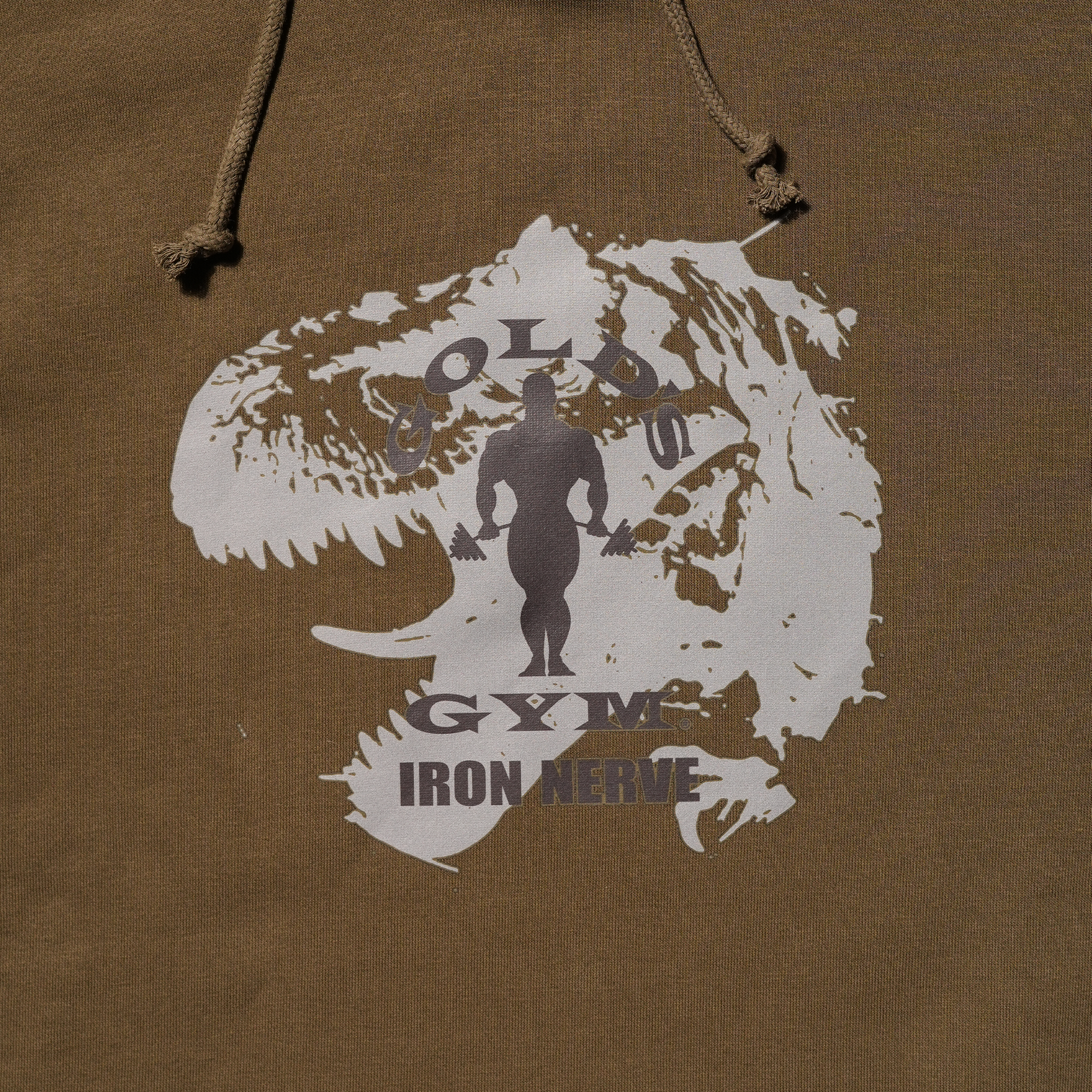 IRON NERVEの恐竜モチーフとGOLD'S GYMロゴを組み合わせた、今回だけの特別デザイン。コラボならではの存在感を放ちます。