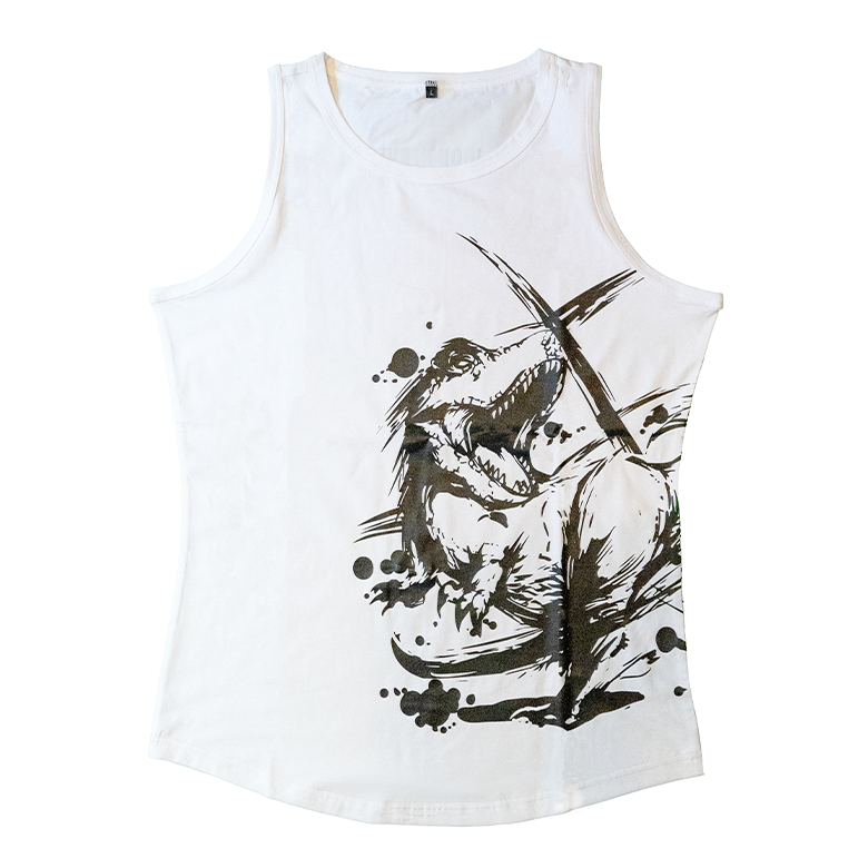 ”強さ”の象徴として力強い墨絵で描かれた恐竜のイラストを、前面から背面にかけて大きく描いており、ダイナミックなデザインに仕上げました!