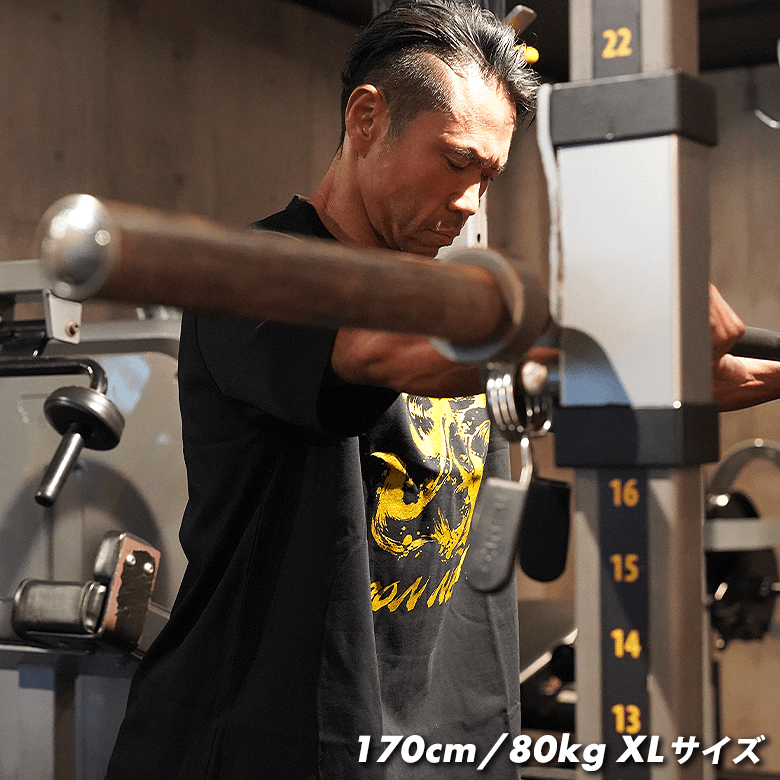 増減量で体型が変わるトレーニーでも着用可能とするため、オーバーサイズで設計!