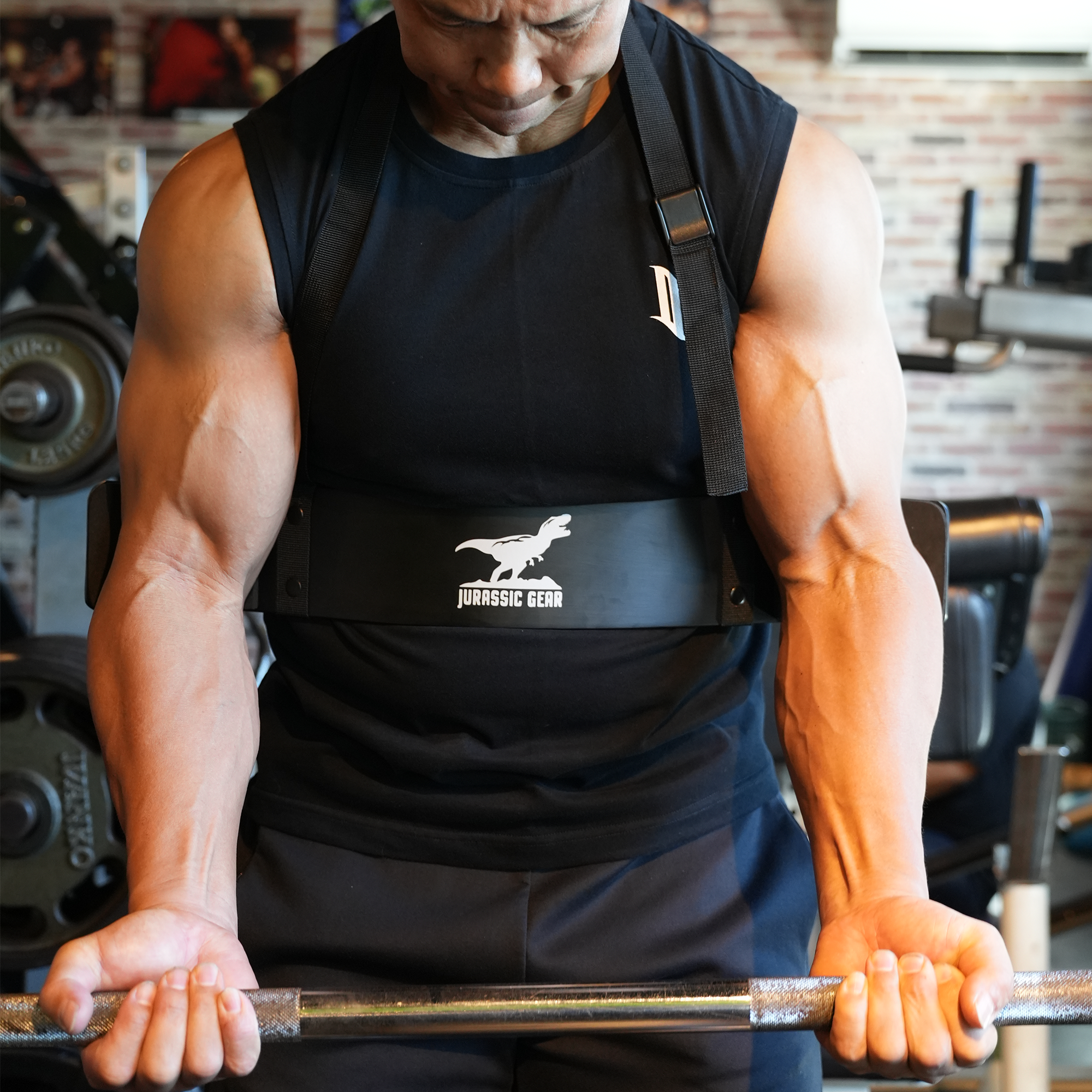 肘が後ろに抜けるのを防ぎ、正しいフォームを自動的にキープ。バーベルカールやEZバーカールなどで二頭筋に負荷を集中させやすく、筋肉の収縮感を確実に感じ取れる構造です。