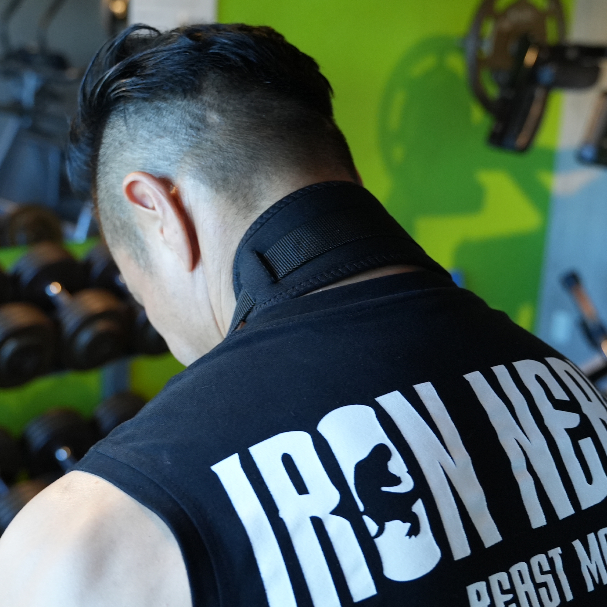 首部分には専用パッドを装備し、紐の食い込みを防止。高重量・長時間のトレーニングでも首が痛くなりにくく、快適に集中してトレーニングを行えます。